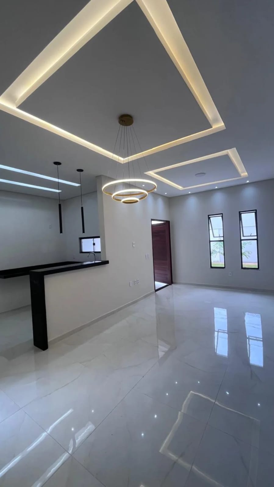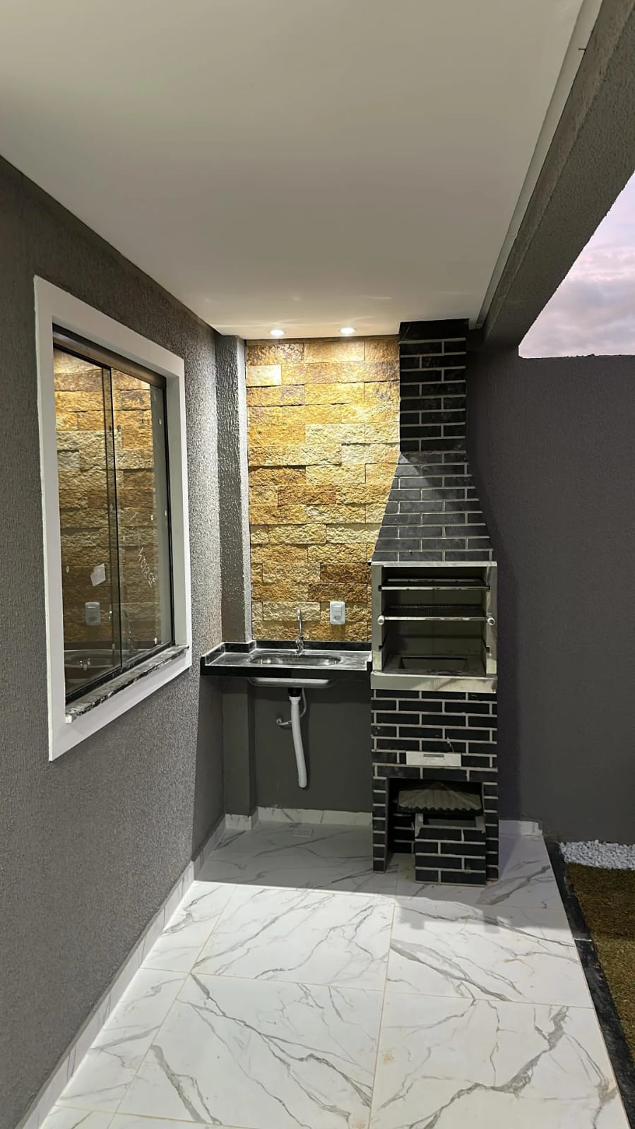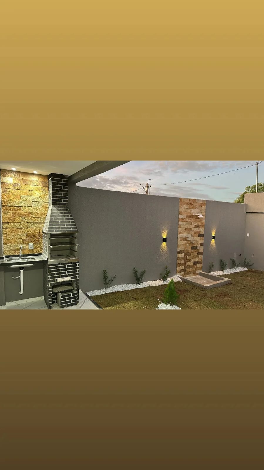 O projeto inclui forro dilatado, portas de vidro, banheiros completos com nicho embutido e chuveiro elétrico, além de iluminação 100% em LED. A área externa conta com bica e churrasqueira, ideal para momentos de lazer.